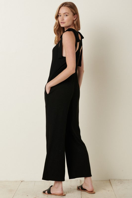 Mittoshop Rib Knit V-Neck Cross Back Jumpsuit