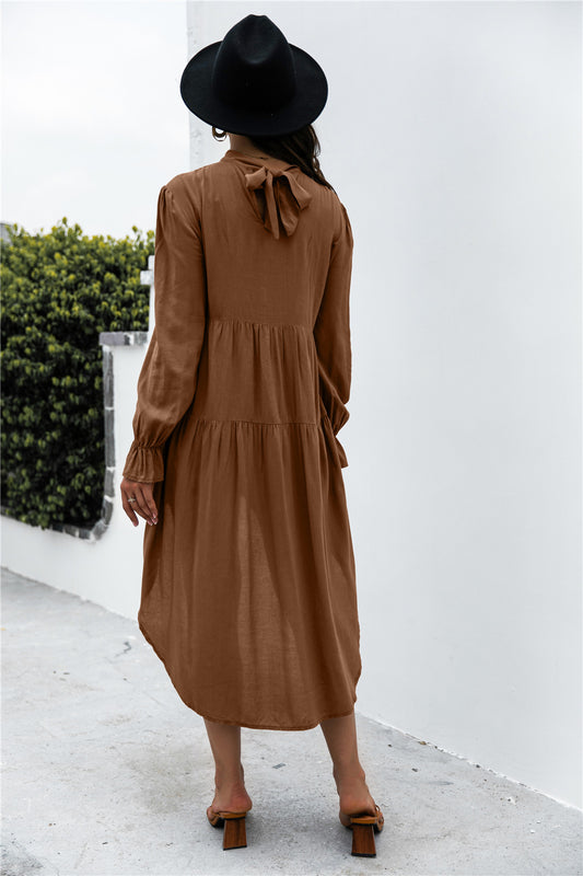 Solid Asymmetrical Patch Pleated Dress